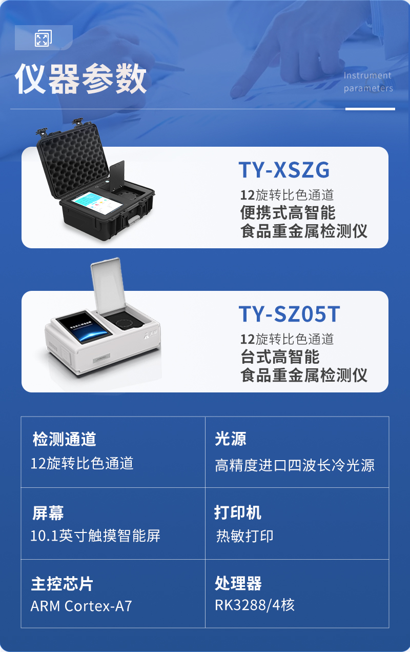 儀器用途: 山東天研儀器有限公司生產(chǎn)的重金屬檢測(cè)儀為集成化食品安全快速檢測(cè)分析設(shè)備,采用臺(tái)式一體化設(shè)計(jì),重金屬檢測(cè)儀可廣泛應(yīng)用于大米、糧谷、果品、蔬菜、藥材、水產(chǎn)品中重金屬鉛、鎘、六價(jià)鉻、汞、砷、鐵、鎳、鋁等項(xiàng)目進(jìn)行快速定量檢測(cè),檢測(cè)項(xiàng)目可根據(jù)客戶的需求定制,儀器預(yù)留其他項(xiàng)目檢測(cè)程序和