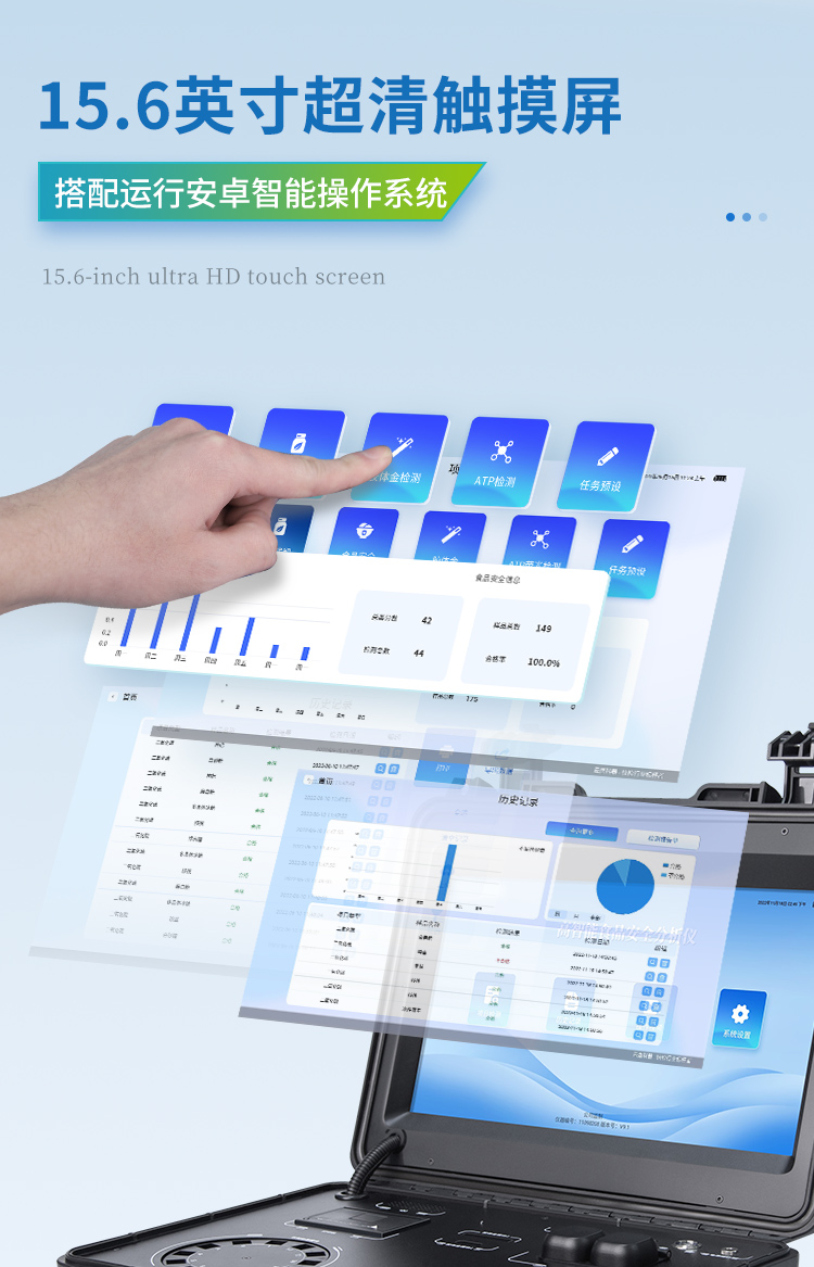 | 儀器采用臺(tái)式一體化系統(tǒng)檢測(cè)技術(shù),將分光光度模塊、膠體金檢測(cè)模塊、新型農(nóng)殘檢測(cè)模塊、數(shù)字化管理模塊、無線通訊模塊高度集成于一體,支持檢測(cè)200種食品安全檢測(cè)項(xiàng)目,同時(shí)預(yù)留升級(jí)檢測(cè)方法。 | 儀器檢測(cè)模塊標(biāo)準(zhǔn)化、智能化,可隨意自由組合。檢測(cè)箱體內(nèi)置多個(gè)標(biāo)準(zhǔn)檢測(cè)單元,檢測(cè)模塊可以調(diào)整配置。 | 儀器采用全新安卓智能系統(tǒng),主控芯片采用 ARM Cortex-A7,RK3288/4核處理器,10.1寸高清液晶觸摸豎屏,更加**的UI交互界面,運(yùn)轉(zhuǎn)快捷;儀器配備無線通信模塊: 4G(APN)通訊模塊、Wifi模塊,藍(lán)牙傳輸,同時(shí)具有雙USB接口以及RJ45接口能以多種方式實(shí)現(xiàn)數(shù)據(jù)保存和數(shù)據(jù)傳輸功能。 | 創(chuàng)新檢測(cè)模式★檢測(cè)通道:≥12通道;采用精密旋轉(zhuǎn)比色池設(shè)計(jì),使用同芯片同光源校準(zhǔn)精度,解決不同光源之間的誤差值。1-12通道間誤差0.1%。(**號(hào):ZL202022821055.2) ★儀器具有自動(dòng)識(shí)別比色皿檢測(cè)功能,即:將樣品比色皿放入儀器后,點(diǎn)擊樣品檢測(cè),儀器自動(dòng)識(shí)別比色皿進(jìn)行通道檢測(cè)。 | 進(jìn)口高精光源:高精度進(jìn)口四波長(zhǎng)冷光源,通道配置 410、520、590、630nm 波長(zhǎng)光源,一個(gè)光源芯片驅(qū)動(dòng)一個(gè)光源,誤差極小,每臺(tái)設(shè)備單獨(dú)**校準(zhǔn)光源,**比對(duì),同時(shí)參照四種不同波段光源全方位覆蓋市面上99%的農(nóng)殘食品項(xiàng)目檢測(cè)。 | 膠體金模塊檢測(cè)方式:★采用COMS實(shí)時(shí)成像技術(shù),可采集多個(gè)畫面,支持2個(gè)金標(biāo)同時(shí)讀卡,通過不同顏色的灰度變化,一秒精準(zhǔn)得出結(jié)果。 | 智能操作分析系統(tǒng): | ★便捷操作系統(tǒng):設(shè)備檢測(cè)時(shí)可在同一檢測(cè)界面自動(dòng)對(duì)應(yīng)相關(guān)檢測(cè)通道一次性選擇1-12個(gè)樣品名稱,無須退出界面,節(jié)省操作時(shí)間。(需提供對(duì)應(yīng)證明) | ★數(shù)據(jù)集成系統(tǒng):設(shè)備首頁自動(dòng)統(tǒng)計(jì)檢測(cè)數(shù)據(jù)包含:周檢測(cè)數(shù)據(jù)、月檢測(cè)數(shù)據(jù),全部檢測(cè)總數(shù)量,均包含檢測(cè)總數(shù),合格數(shù),不合格數(shù),以及相關(guān)柱形分析圖,對(duì)各項(xiàng)檢測(cè)數(shù)據(jù)清晰掌握,無需電腦查詢,更加快捷直觀。(需提供對(duì)應(yīng)證明文件) | ★項(xiàng)目預(yù)設(shè)系統(tǒng):支持添加單個(gè)及多個(gè)相同或不相同的任務(wù)預(yù)設(shè),一鍵快速調(diào)取,每一個(gè)任務(wù)分別可以設(shè)置不同的樣品、批次、編號(hào)、來源、備注、抽樣信息、檢測(cè)信息、受檢信息、復(fù)核信息等更多信息。無縫鏈接平臺(tái)和APP實(shí)時(shí)查看下發(fā)任務(wù)。(需提供對(duì)應(yīng)證明文件) | ★數(shù)據(jù)監(jiān)管系統(tǒng):同步對(duì)接監(jiān)管平臺(tái),數(shù)據(jù)可局域網(wǎng)和互聯(lián)網(wǎng)數(shù)據(jù)上傳,檢測(cè)結(jié)果可選擇直接傳至食品安全監(jiān)管平臺(tái)。集成OSS輸出存儲(chǔ)服務(wù)、區(qū)分設(shè)備定向管理應(yīng)用,進(jìn)行區(qū)域食品安全監(jiān)管及大數(shù)據(jù)分析處理與數(shù)據(jù)統(tǒng)計(jì),檢測(cè)區(qū)域食品安全長(zhǎng)短期動(dòng)態(tài),達(dá)到食品安全問題預(yù)估、預(yù)警。(需提供對(duì)應(yīng)食品理化分析系統(tǒng)計(jì)算機(jī)軟件著作權(quán))。 | ★ 自定義打印系統(tǒng):內(nèi)置全新打印系統(tǒng),新創(chuàng)自定義打印方式,可按需靈活設(shè)置開啟或關(guān)閉:產(chǎn)品合格證(國(guó)家農(nóng)業(yè)部標(biāo)準(zhǔn)要求),二維碼,抽樣信息、檢測(cè)信息,受檢信息、復(fù)核信息、抽樣日期、檢測(cè)日期等信息的打印。(需提供對(duì)應(yīng)證明) | ★系統(tǒng)遠(yuǎn)程更新功能:可定向分客戶分儀器更新系統(tǒng),按照不同客戶后期實(shí)際需求添加項(xiàng)目,無需機(jī)器返廠,即可遠(yuǎn)程實(shí)時(shí)升級(jí)全新系統(tǒng),節(jié)省時(shí)間成本及避免運(yùn)輸造成設(shè)備損壞。 | 儀器主機(jī)采用一體化防水、抗壓、防撞擊、防腐蝕箱體設(shè)計(jì),同時(shí)配備交直流供電,可連接車載電源,可選配大容量充電鋰電池,滿足現(xiàn)場(chǎng)野外檢測(cè)需求。 | 安全證書,放心保障:儀器具有中國(guó)計(jì)量科學(xué)研究院校準(zhǔn)證書,**認(rèn)證。 |
