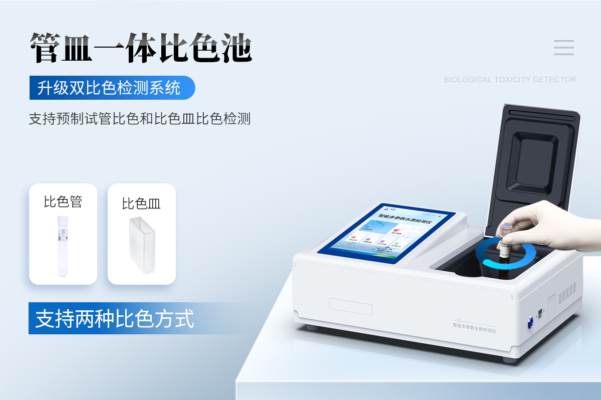 提取一定量水體樣品,經(jīng)過前處理后根據(jù)不同檢測項目按照試劑說明書滴入檢測試劑,檢測試劑會與水體中的待測物質(zhì)發(fā)生反應,反應液呈現(xiàn)特定的顏色。
