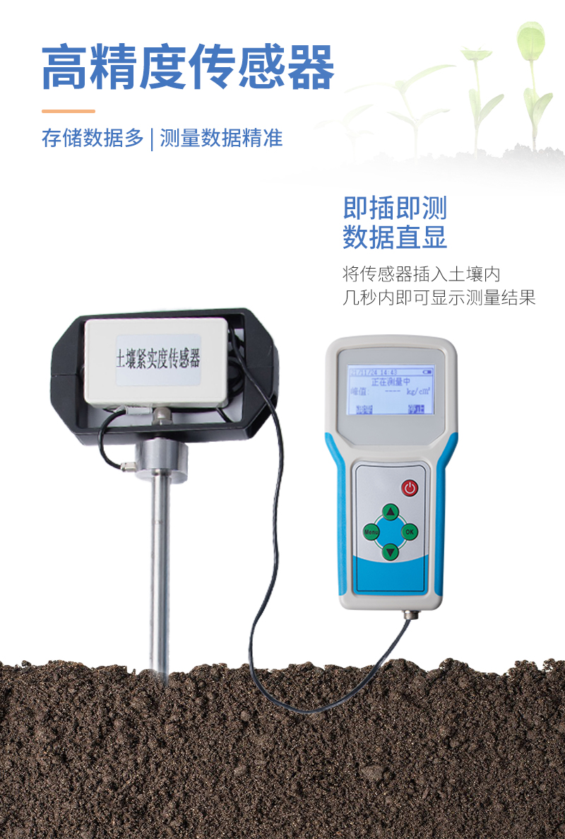土壤緊實(shí)度由土壤抗剪力、壓縮力和摩擦力等構(gòu)成。是土壤強(qiáng)度的一個合成指標(biāo)。金屬柱塞或探針壓入土壤時分動載和靜載兩種方法,不同方法的測定值不同,但有聯(lián)系。柱塞的形狀有錐體、平頭、圓球及楔子等,這些對測定值也有影響。對同一種方法的測定值,主要決定于土壤質(zhì)地、容重和含水量。其中含水量的影響**。土壤緊實(shí)度可預(yù)測土壤承載量、耕性和根系伸展的阻力。土壤緊實(shí)度的大小可影響作物根系的穿孔和生長,是一個重要的土壤物理特性指標(biāo),用于評價土壤耕性。緊實(shí)的土壤可阻止水分的入滲,降低化肥的利用率,影響植物根系生長,導(dǎo)致作物減產(chǎn)。