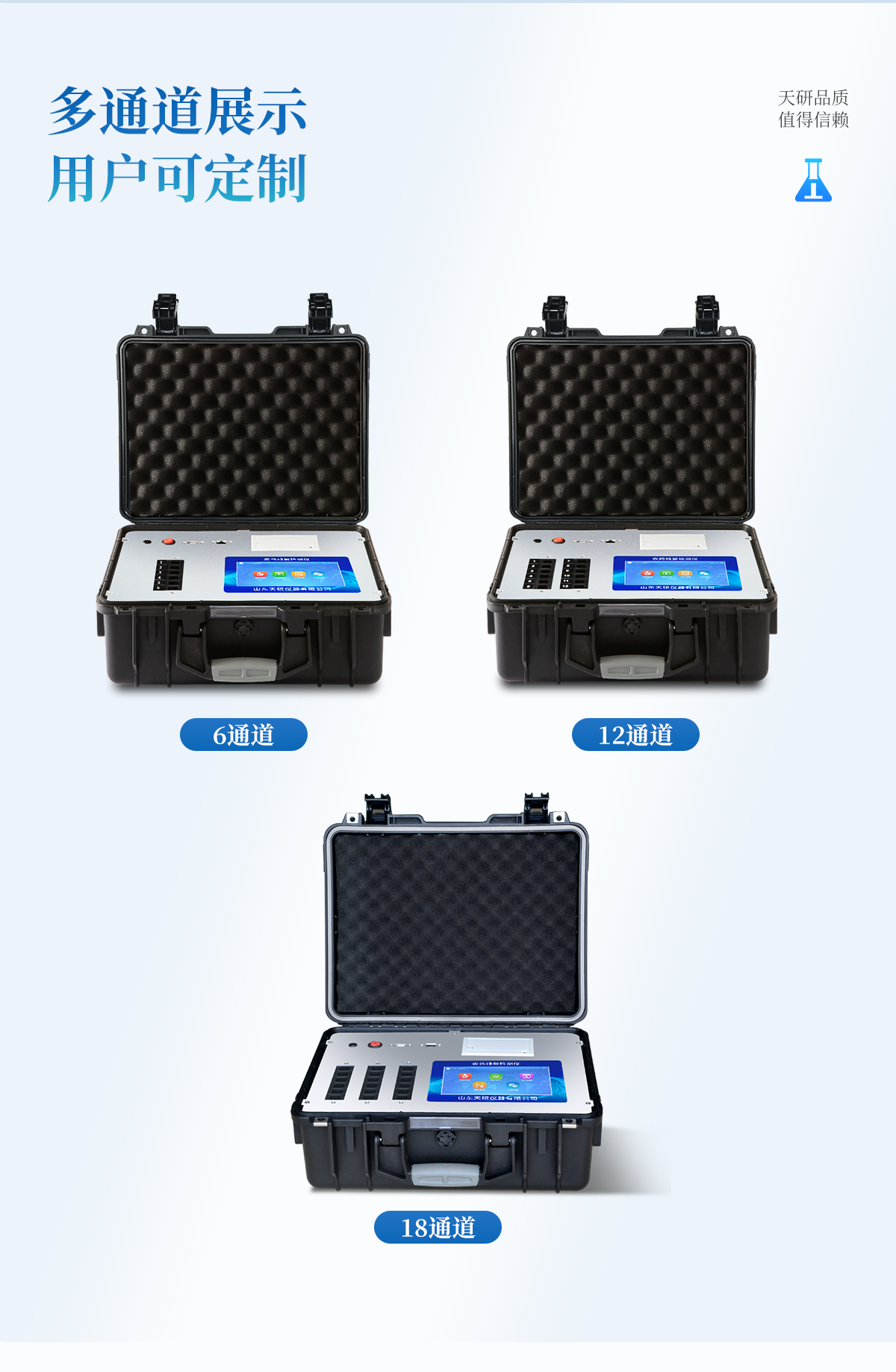 | 機箱采用工業(yè)級ABS工程塑料箱,方便攜帶,穩(wěn)固耐用,便于流動測試。 | 智能操作系統(tǒng),采用更加人性化操作,主控采用多核處理器,主頻1.88Ghz,運轉(zhuǎn)速度更快速,穩(wěn)定性更強。 | 自動判斷樣品是否合格,檢測結(jié)果更加直觀。 | 儀器具有100多種蔬菜名稱菜單庫,分類管理,并可按需添加或刪除蔬菜名,編輯蔬菜名稱,可直接打印出蔬菜名稱。 | 檢測通道:6個檢測通道,可以同時測試多個樣品,循環(huán)檢測,即放即檢,每個樣品由程序控制分別獨立工作,不會互相干擾。 | 儀器具有wifi聯(lián)網(wǎng)功能,可將數(shù)據(jù)快速上傳電腦,進行數(shù)據(jù)管理與統(tǒng)計,4G信號GPRS遠傳功能,可插手機卡實現(xiàn)數(shù)據(jù)遠傳平臺,。 | 顯示方式:7英寸高靈敏真彩觸摸屏顯示,人性化中文操作界面,讀數(shù)直觀、簡單。 | 打印機采用串口5v打印,可選擇手動打印或者自動打印,三分鐘出打印結(jié)果,打印格式為檢測人姓名、吸光度差值、檢測時間、檢測機構(gòu)、樣品名稱及結(jié)果判定。 | 光源采用進口超高亮發(fā)光二極管,具有低功耗、高精度、穩(wěn)定性強、光源可控可以關(guān)掉不使用的光源,響應(yīng)速度快等優(yōu)點。 | 智能恒流穩(wěn)壓,光強自動校準,長時間連續(xù)工作光源無溫漂現(xiàn)象。 | 采用USB2.0接口設(shè)計,方便數(shù)據(jù)的存貯和移動,并可隨時與計算機直接相連,并且可用計算機控制儀器。實現(xiàn)數(shù)據(jù)查詢、瀏覽、分析、統(tǒng)計、打印等。 | 智能化程度高,儀器具有自檢功能:具有開機自檢和調(diào)零功能,具有自動檢測重復性功能 | 儀器具有自身保護功能,可設(shè)置用戶名及密碼,防止非工作人員操作等。 | 采用DC12v直流供電,安全系統(tǒng)更高,并且配備6A鋰電池充電器。 | 儀器具有重新校準、鎖定、恢復出廠設(shè)置功能。 |
