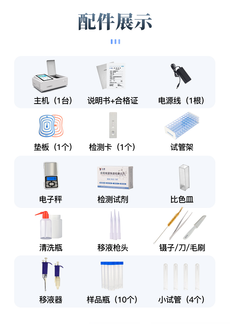 | 儀器采用臺式一體化系統(tǒng)檢測技術(shù),將分光光度模塊、新型農(nóng)殘檢測模塊、數(shù)字化管理模塊、無線通訊模塊高度集成于一體,支持檢測200種食品安全檢測項(xiàng)目,同時(shí)預(yù)留升級檢測方法。 | 儀器檢測模塊標(biāo)準(zhǔn)化、智能化,可隨意自由組合。檢測箱體內(nèi)置多個(gè)標(biāo)準(zhǔn)檢測單元,檢測模塊可以調(diào)整配置。 | 儀器采用全新安卓智能系統(tǒng),主控芯片采用 ARM Cortex-A7,RK3288/4核處理器,10.1寸高清液晶觸摸豎屏,更加**的UI交互界面,運(yùn)轉(zhuǎn)快捷;儀器配備無線通信模塊: 4G(APN)通訊模塊、Wifi模塊,藍(lán)牙傳輸,同時(shí)具有雙USB接口以及RJ45接口能以多種方式實(shí)現(xiàn)數(shù)據(jù)保存和數(shù)據(jù)傳輸功能。 | 創(chuàng)新檢測模式: | ★檢測通道:≥12通道;采用精密旋轉(zhuǎn)比色池設(shè)計(jì),使用同芯片同光源校準(zhǔn)精度,解決不同光源之間的誤差值。1-12通道間誤差0.1%。(**號:ZL202022821055.2) | ★儀器具有自動(dòng)識別比色皿檢測功能,即:將樣品比色皿放入儀器后,點(diǎn)擊樣品檢測,儀器自動(dòng)識別比色皿進(jìn)行通道檢測。 | 進(jìn)口高精光源: | 高精度進(jìn)口四波長冷光源,通道配置 410、520、590、630nm 波長光源,一個(gè)光源芯片驅(qū)動(dòng)一個(gè)光源,誤差極小,每臺設(shè)備單獨(dú)**校準(zhǔn)光源,**比對,同時(shí)參照四種不同波段光源全方位覆蓋市面上99%的農(nóng)殘食品項(xiàng)目檢測。 | 智能化操作系統(tǒng): | 便捷操作系統(tǒng):設(shè)備檢測時(shí)可在同一檢測界面自動(dòng)對應(yīng)相關(guān)檢測通道一次性選擇1-12個(gè)樣品名稱,無須退出界面,節(jié)省操作時(shí)間。 | 數(shù)據(jù)集成系統(tǒng):設(shè)備首頁自動(dòng)統(tǒng)計(jì)檢測數(shù)據(jù)包含:周檢測數(shù)據(jù)、月檢測數(shù)據(jù),全部檢測總數(shù)量,均包含檢測總數(shù),合格數(shù),不合格數(shù),以及相關(guān)柱形分析圖,對各項(xiàng)檢測數(shù)據(jù)清晰掌握,無需電腦查詢,更加快捷直觀。 | 項(xiàng)目預(yù)設(shè)系統(tǒng):支持添加單個(gè)及多個(gè)相同或不相同的任務(wù)預(yù)設(shè),一鍵快速調(diào)取,每一個(gè)任務(wù)分別可以設(shè)置不同的樣品、批次、編號、來源、備注、抽樣信息、檢測信息、受檢信息、復(fù)核信息等更多信息。無縫鏈接平臺和APP實(shí)時(shí)查看下發(fā)任務(wù)。 | 數(shù)據(jù)監(jiān)管系統(tǒng):同步對接監(jiān)管平臺,數(shù)據(jù)可局域網(wǎng)和互聯(lián)網(wǎng)數(shù)據(jù)上傳,檢測結(jié)果可選擇直接傳至食品安全監(jiān)管平臺。集成OSS輸出存儲(chǔ)服務(wù)、區(qū)分設(shè)備定向管理應(yīng)用,進(jìn)行區(qū)域食品安全監(jiān)管及大數(shù)據(jù)分析處理與數(shù)據(jù)統(tǒng)計(jì),檢測區(qū)域食品安全長短期動(dòng)態(tài),達(dá)到食品安全問題預(yù)估、預(yù)警。 | 自定義打印系統(tǒng):內(nèi)置全新打印系統(tǒng),新創(chuàng)自定義打印方式,可按需靈活設(shè)置開啟或關(guān)閉:產(chǎn)品合格證(國家農(nóng)業(yè)部標(biāo)準(zhǔn)要求),二維碼,抽樣信息、檢測信息,受檢信息、復(fù)核信息、抽樣日期、檢測日期等信息的打印。 | 系統(tǒng)遠(yuǎn)程更新功能:可定向分客戶分儀器更新系統(tǒng),按照不同客戶后期實(shí)際需求添加項(xiàng)目,無需機(jī)器返廠,即可遠(yuǎn)程實(shí)時(shí)升級全新系統(tǒng),節(jié)省時(shí)間成本及避免運(yùn)輸造成設(shè)備損壞。 | 儀器主機(jī)采用一體化防水、抗壓、防撞擊、防腐蝕箱體設(shè)計(jì),同時(shí)配備交直流供電,可連接車載電源,可選配大容量充電鋰電池,滿足現(xiàn)場野外檢測需求。 | 安全證書,放心保障:儀器具有中國計(jì)量科學(xué)研究院校準(zhǔn)證書,**認(rèn)證。 |