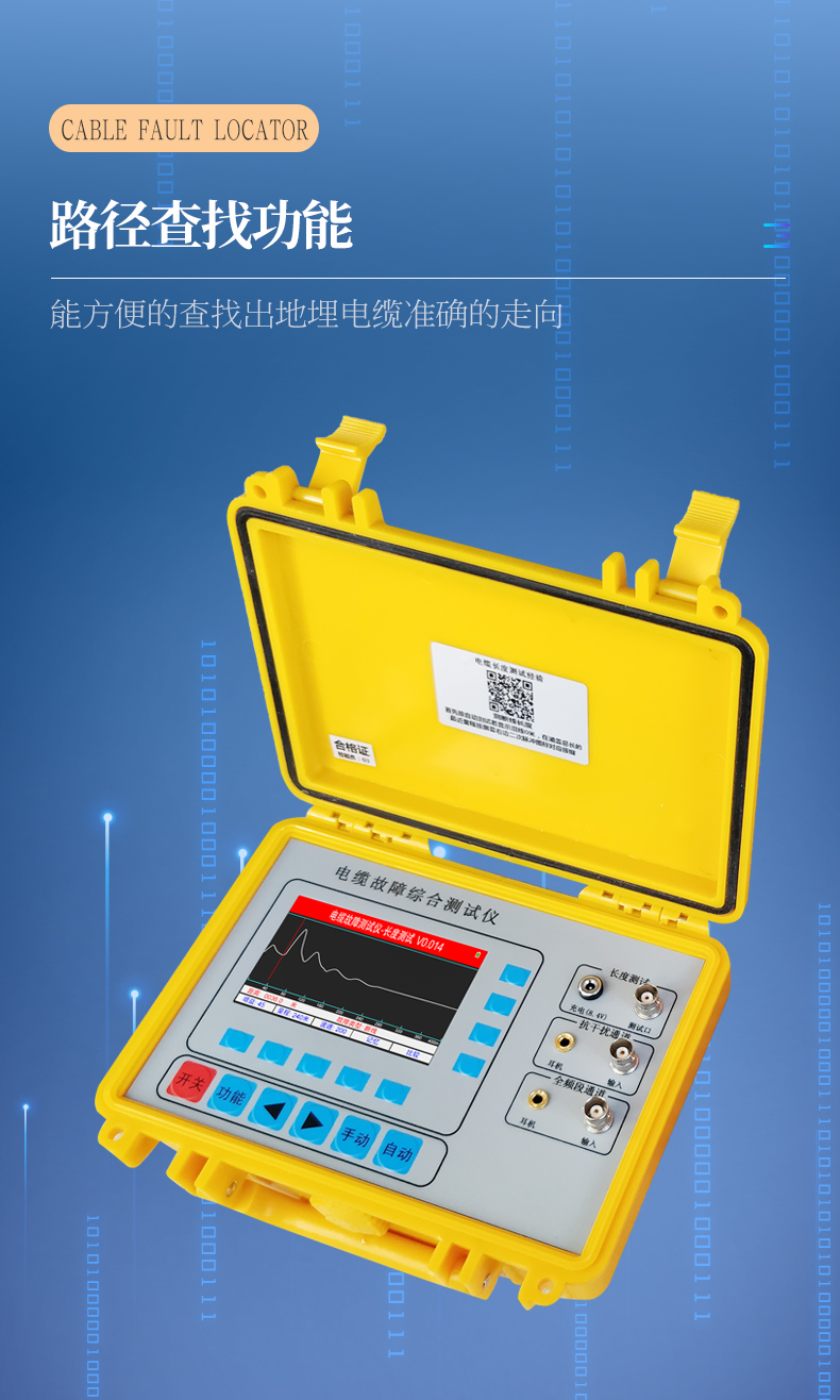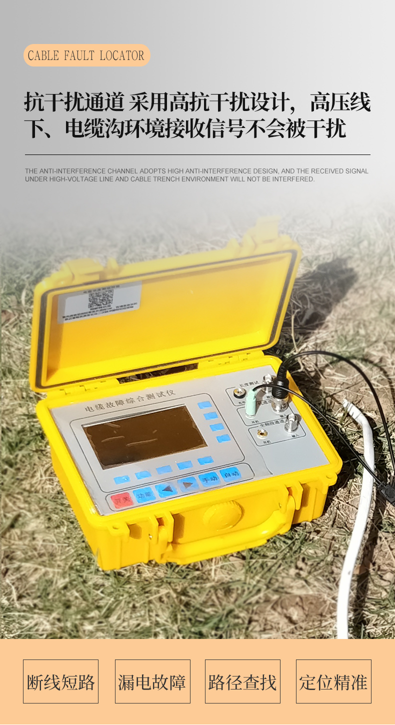 適用于路燈電纜維護、農(nóng)田水澆地電纜故障查修、小區(qū)物業(yè)及園林綠化帶地埋鎧甲鐵皮電力電纜、野外動力電纜、高速公路、廠礦企業(yè)、鐵塔通信基站直埋供電電纜故障排查等行業(yè)。