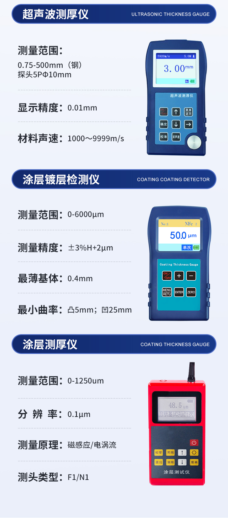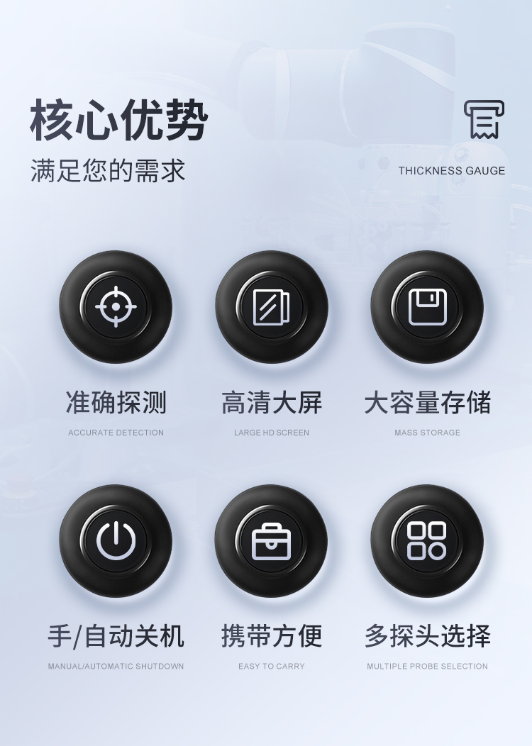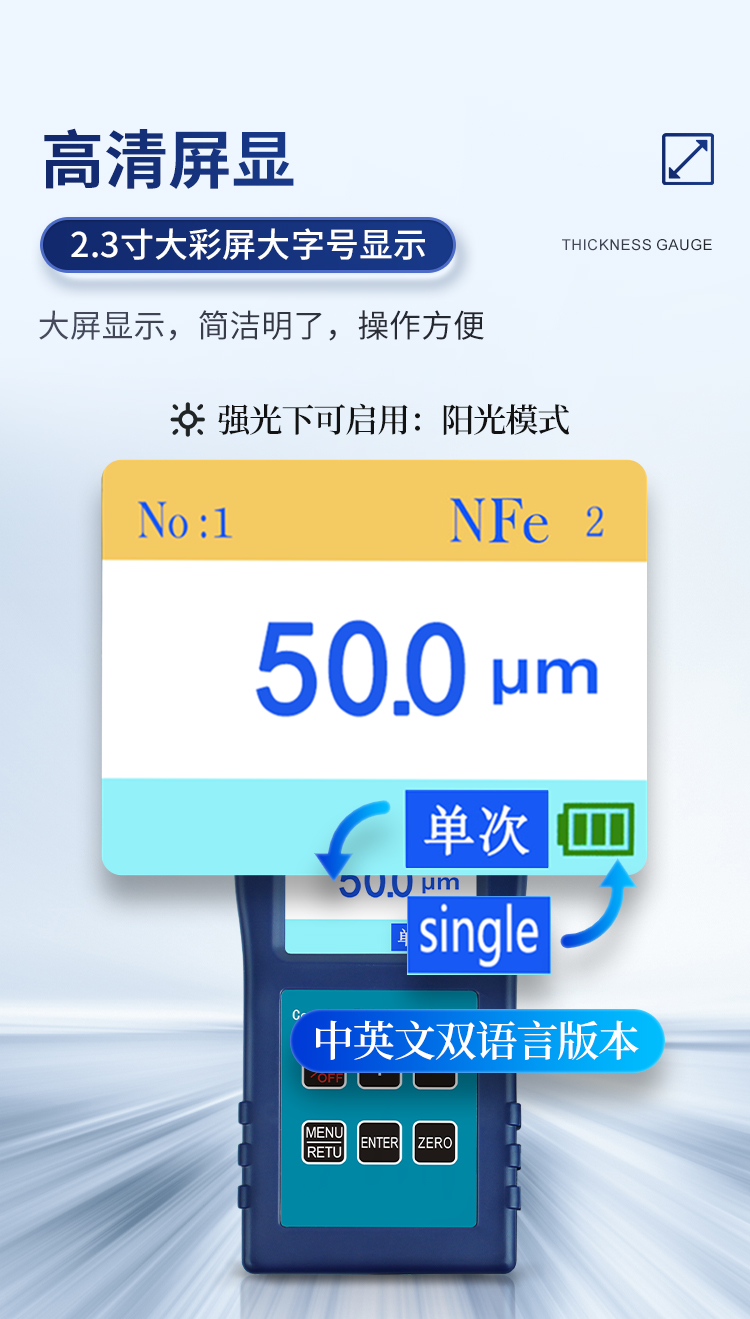 產(chǎn)品簡(jiǎn)介: 涂鍍層測(cè)厚儀是一款測(cè)量磁性金屬材料表面涂鍍層覆蓋層物體厚度的專(zhuān)業(yè)無(wú)損檢測(cè)儀器。采用磁性測(cè)厚方法,可無(wú)損地測(cè)量磁性金屬基體(如:鋼、鐵)上非磁性覆層的厚度(鍍鋅、鉻、錮、琺瑯、橡膠、粉末、油漆、電泳、搪瓷、噴塑、涂料、防腐防火涂層等),本儀器結(jié)構(gòu)精密牢固,重復(fù)性好,性能猶佳