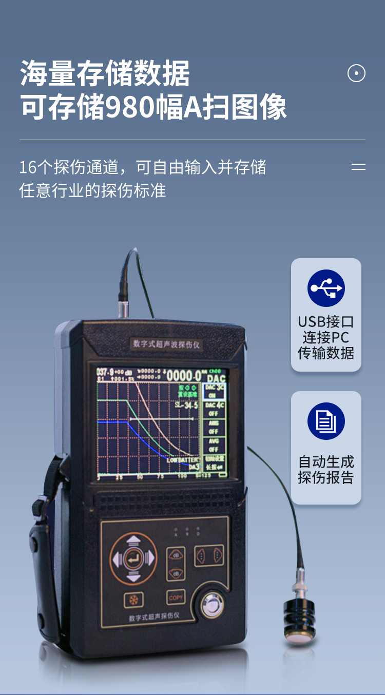 數(shù)字超聲波探傷儀能夠快速便捷、無損傷、準(zhǔn)確地進(jìn)行工件內(nèi)部多種缺陷如裂紋、焊縫、氣孔、砂眼、夾雜、折疊等的檢測(cè)、定位、評(píng)估及診斷,廣泛應(yīng)用于電力、石化、鍋爐壓力容器、鋼結(jié)構(gòu)、航空航天、鐵路交通、汽車、機(jī)械等領(lǐng)域。它是檢測(cè)行業(yè)的重要儀器。