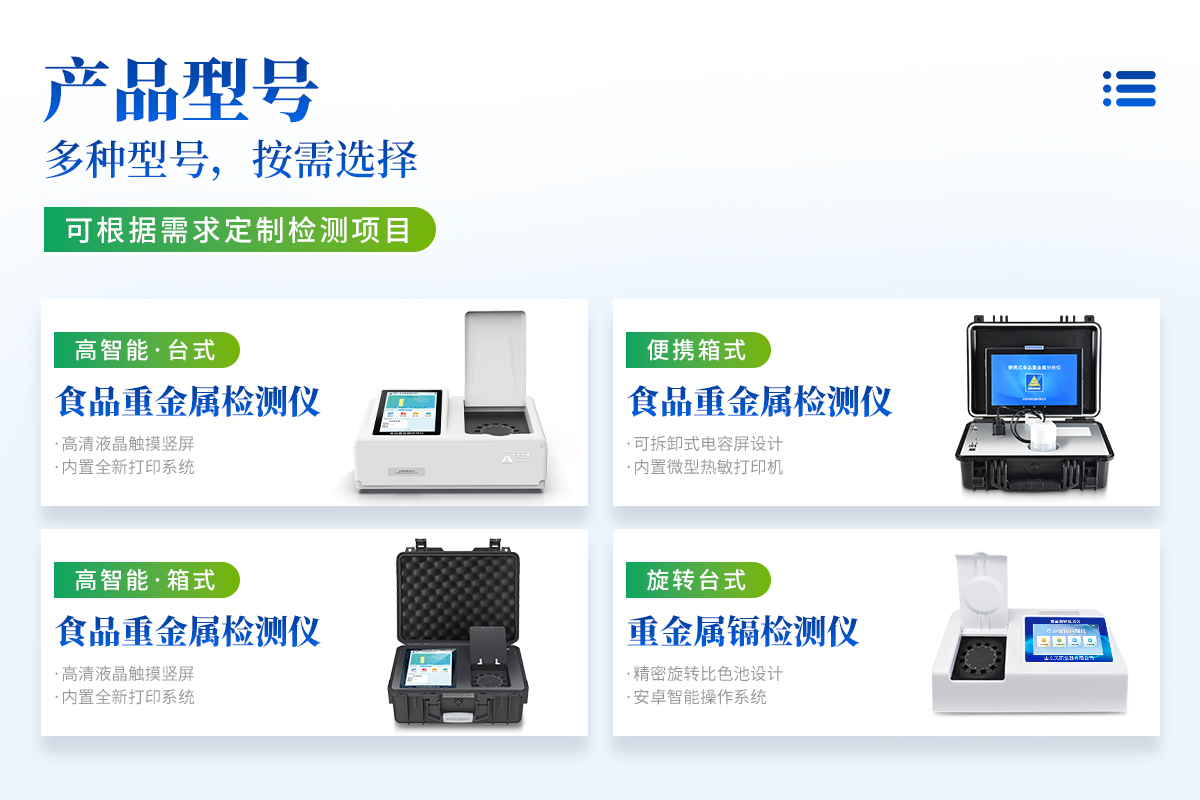 可快速檢測重金屬鉛、鎘、銅、鋅、汞、砷等。