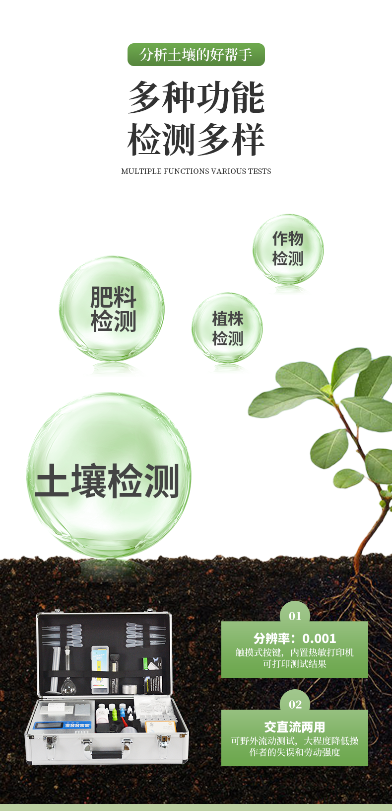 | 全項目土壤肥料養(yǎng)分檢測儀功能全:測試項目國內(nèi)外*全(各類藥劑均可選購)。 | 配套齊全:該儀器集藥、器、儀為一體,攜帶方便,相當(dāng)于一個小型實驗室。適于農(nóng)業(yè)服務(wù)部門或農(nóng)資經(jīng)銷商、肥料廠商測土施肥和鑒別肥料真假。 | 操作簡便、速度快捷,成品藥劑開瓶即用,無須配置。 |
