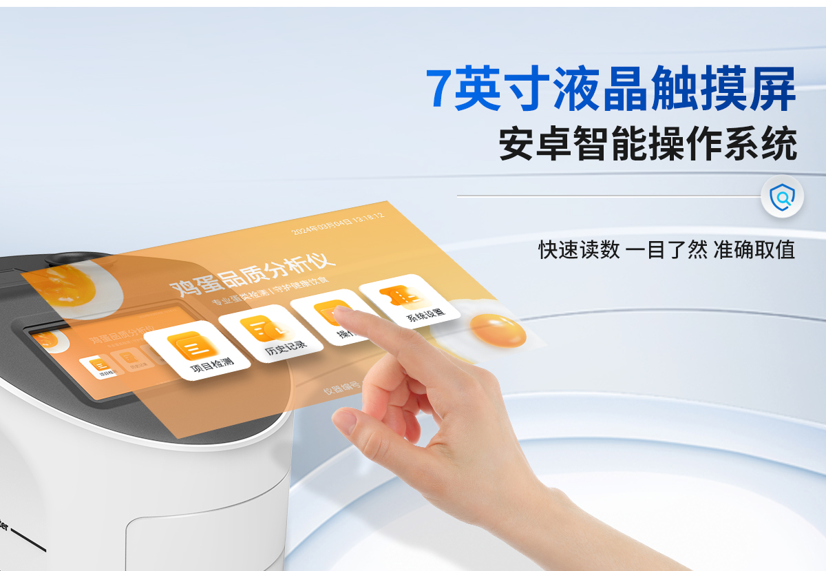 隨著消費者對食品安全問題的日益關(guān)注,雞蛋品質(zhì)檢測成為了保障雞蛋質(zhì)量、維護(hù)消費者健康權(quán)益的重要手段。我司生產(chǎn)的雞蛋品質(zhì)檢測儀可通過專業(yè)的檢測項目和方法,進(jìn)行雞蛋的品質(zhì)檢測和分析。