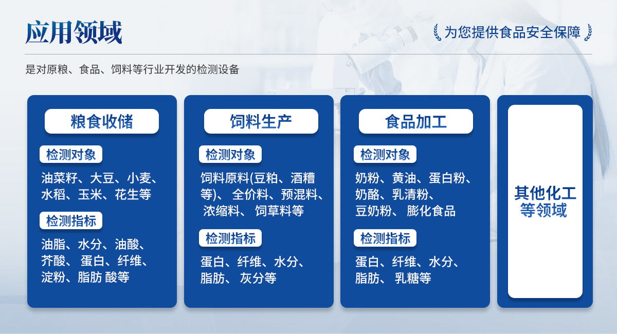 檢測對象:奶粉、黃油、奶酪、乳清粉、豆奶粉、蛋白粉、膨化食品; 檢測指標(biāo):蛋白、纖維、水分、脂肪、乳糖等; | ◆ 其他化工等領(lǐng)域 |
