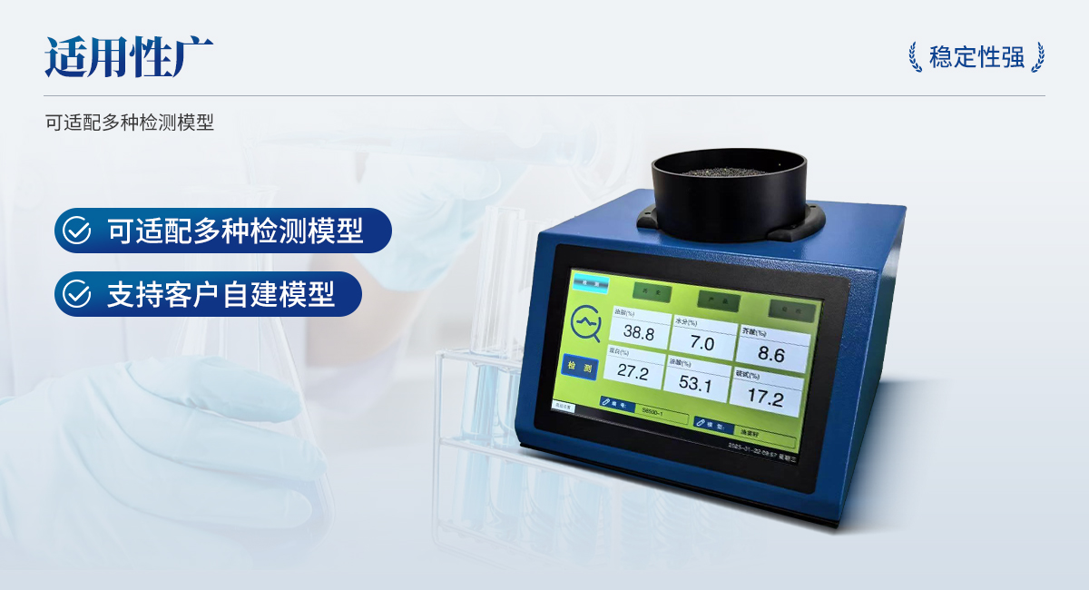 近紅外光譜分析儀,是針對原糧、食品、飼料等行業(yè)開發(fā)的專用 檢測設(shè)備,可無損、快速、準(zhǔn)確地檢測樣本的水分、脂肪、蛋白質(zhì)等多種指標(biāo)。