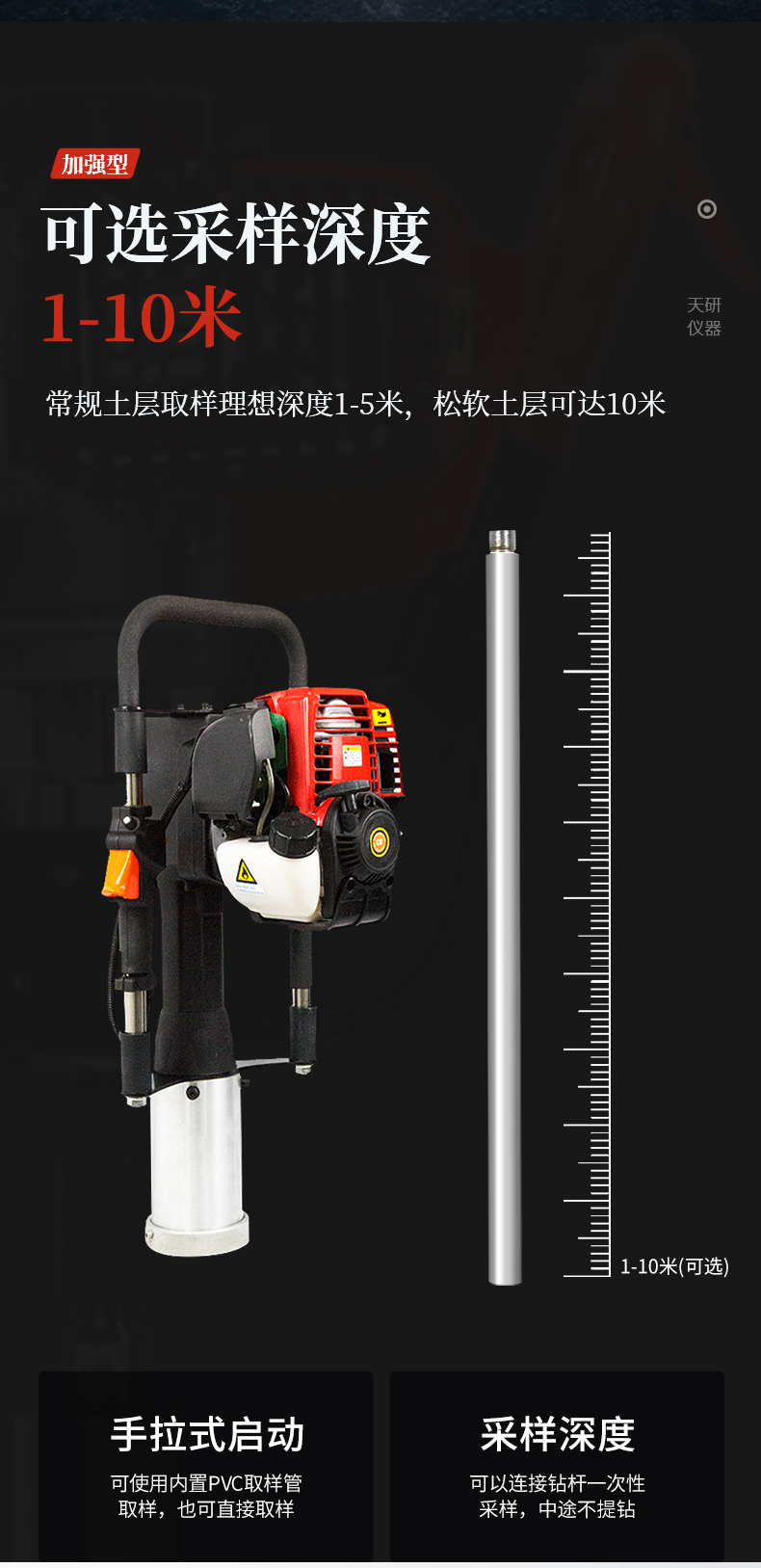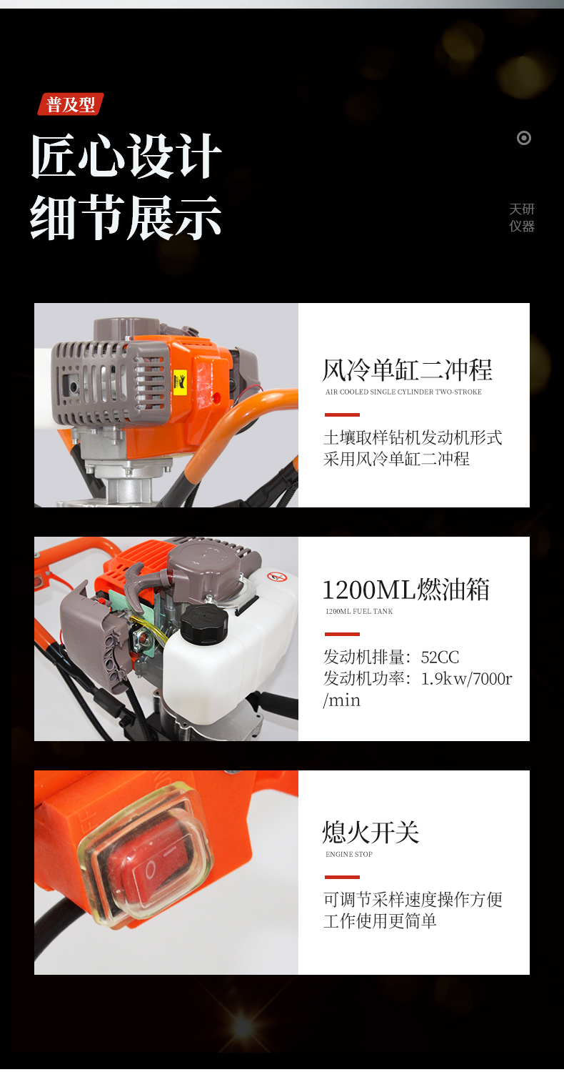 動(dòng)力(汽油)土壤采樣器(汽油動(dòng)力土鉆)土壤采樣器是本廠汲取廣大客戶意見、經(jīng)多方用戶需求和市場(chǎng)調(diào)研,開發(fā)出的一款動(dòng)力(汽油)土壤采樣器。儀器采用汽油機(jī)驅(qū)動(dòng)、以大幅減免土壤取樣人員的勞動(dòng)力和快速、取樣簡(jiǎn)便而著稱。