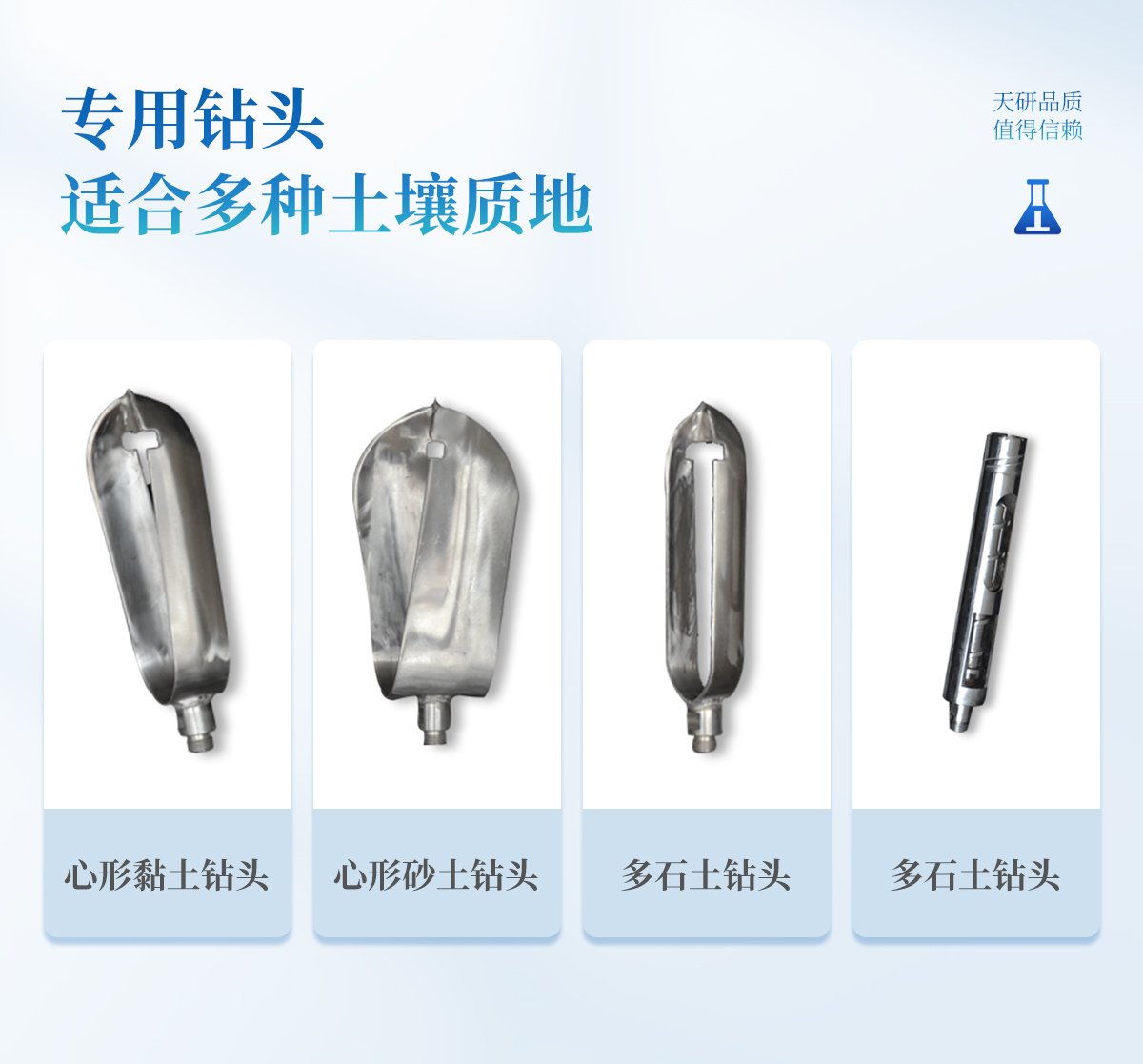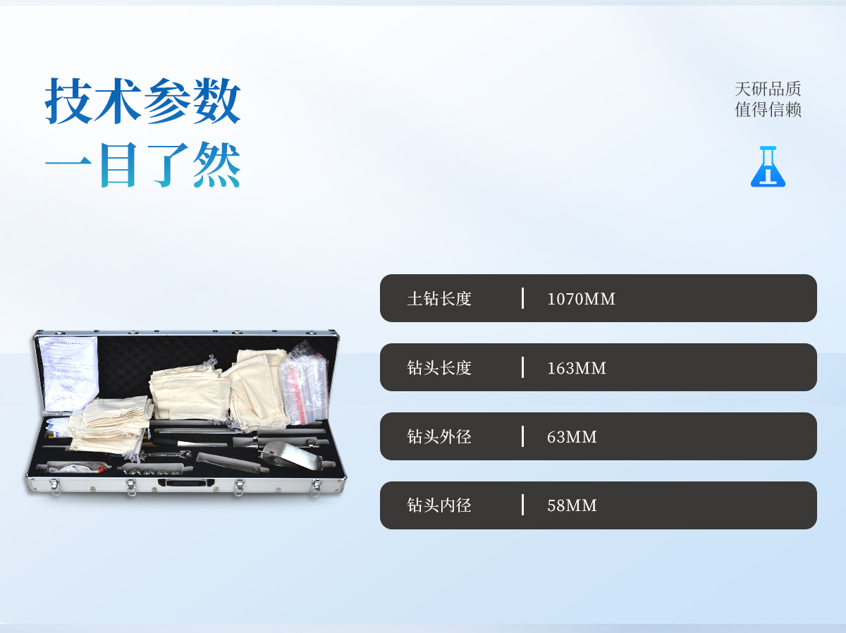 | 可針對(duì)不同直徑的土壤顆粒配備不同的專用鉆頭,對(duì)不同深度和區(qū)域的土壤進(jìn)行合理采樣和分類。 |