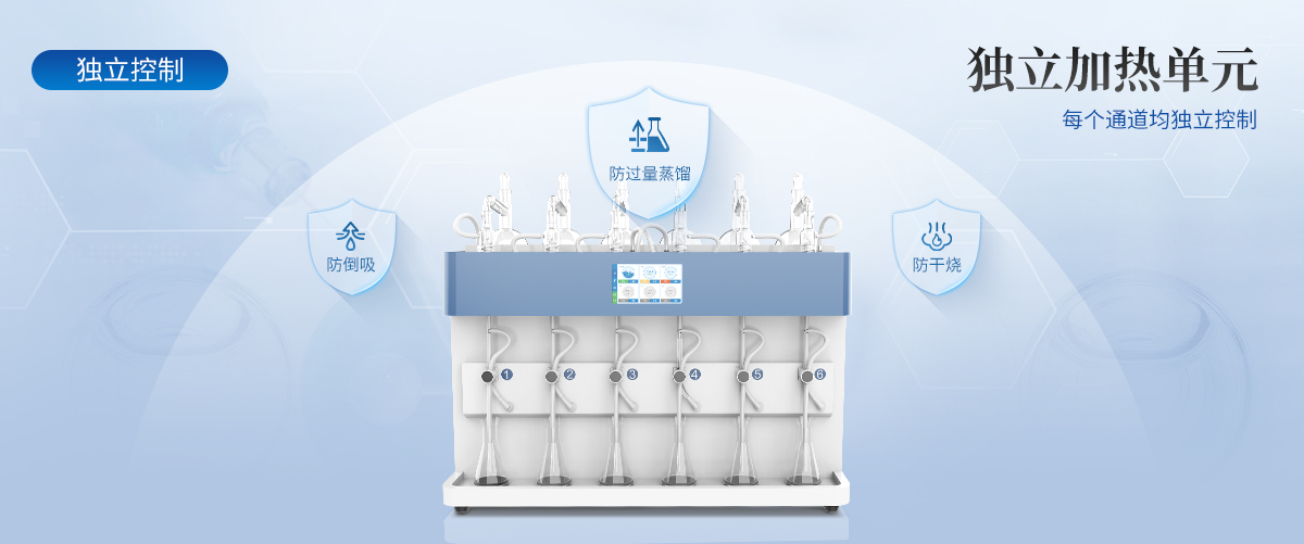各級(jí)實(shí)驗(yàn)室的前處理實(shí)驗(yàn)過(guò)程中,蒸餾實(shí)驗(yàn)是非常常見(jiàn)且又非常重要的一項(xiàng)前處理步驟。但傳統(tǒng)的蒸餾裝置由于加熱,冷凝,接收等裝置部分結(jié)構(gòu)獨(dú)立,操作繁瑣,效率較低,故障率高,蒸餾過(guò)程中加熱溫度不易控制,終點(diǎn)無(wú)法自動(dòng)判斷停止,餾出液易倒吸,相應(yīng)帶來(lái)平行性差,回收率低等直接影響實(shí)驗(yàn)結(jié)果的現(xiàn)象等各種弊端。