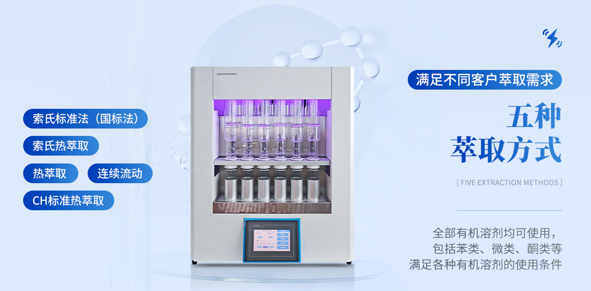 產(chǎn)品介紹:全自動(dòng)脂肪測(cè)定儀(索氏提取儀)是根據(jù)索氏抽提原理,對(duì)脂肪等有機(jī)物進(jìn)行萃取分離的儀器。儀器具有索氏標(biāo)準(zhǔn)法(國(guó)標(biāo)法)、索氏熱萃取、熱萃取、連續(xù)流動(dòng)及CH標(biāo)準(zhǔn)熱萃取等五種萃取方式;采用整體嵌入式金屬加熱,升溫快, 效果好,功耗低。安卓風(fēng)格界面設(shè)計(jì),豎屏外置壁掛式控制器,使操作更加簡(jiǎn)便快捷;進(jìn)出水路全方