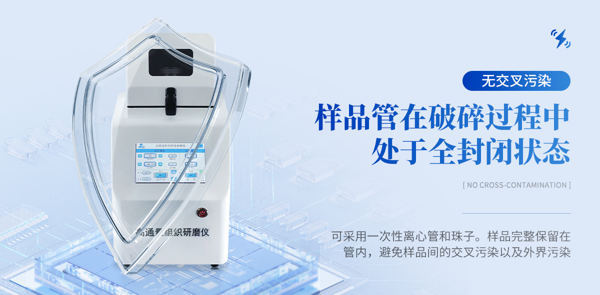 高通量組織研磨機采用了特殊的垂直上下震動模式, 通過研磨珠(氧化鋯、鋼珠、玻璃珠、陶瓷珠)的高頻往復振動、撞擊、 剪切。快速的實現(xiàn)目的。使研磨的樣品具有更加充分、更均勻、樣品重復 性更好、樣品之間沒有交叉污染。