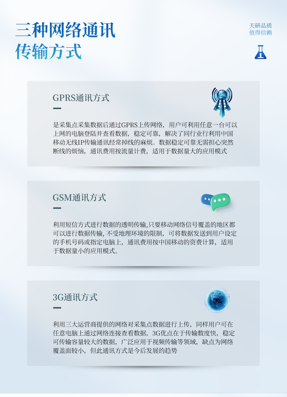 | 預(yù)先埋入一根塑料管,將主傳感器安置于管內(nèi),能夠從預(yù)留管中輕松地取出、更換主傳感器,維修方便,循環(huán)使用率高。 | 可在塑料管中上下移動,實現(xiàn)對各個土層土壤水分含量的動態(tài)觀測。 | 發(fā)射近1G赫茲的高頻探測波,可以穿透塑料管,有效感知土壤環(huán)境。 | 不會受土壤中鹽離子的影響,化肥、農(nóng)藥、灌溉等農(nóng)業(yè)活動不會影響測量結(jié)果,數(shù)據(jù)精準(zhǔn)。 | 傳感器的電極沒有直接與土壤接觸,避免電力對土壤及土壤中的植物的干擾。 | 可以靈活定制不同土層深度間隔的監(jiān)測儀,滿足不同用戶的實際需求 |