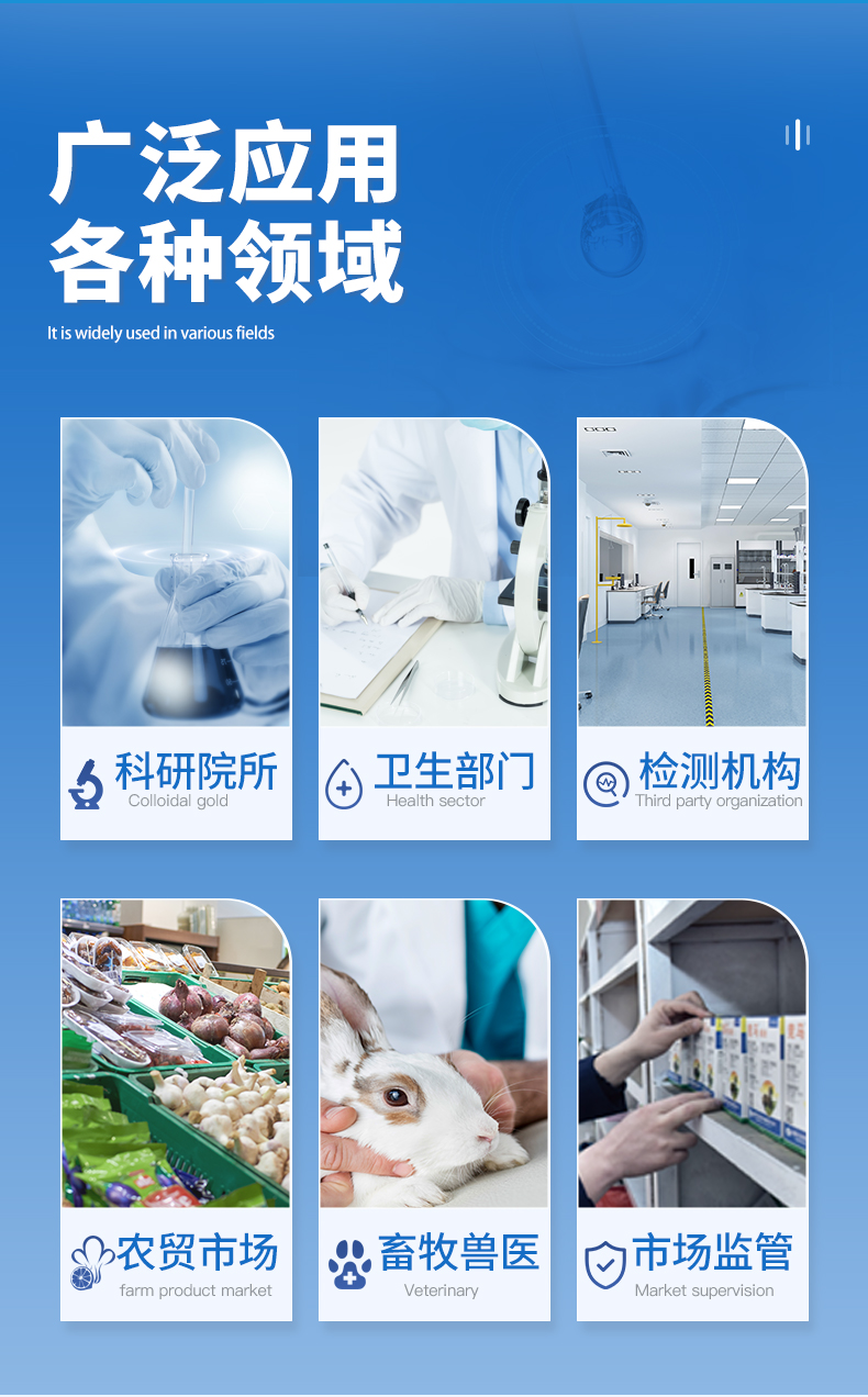| 瘦肉精激素類(獸藥):鹽酸克倫特羅、沙丁胺醇、萊克多巴胺、己烯雌酚、喹乙醇等 | 抗生素殘留類(獸藥):四環(huán)素類、硝基呋喃類、磺胺類、沙星類、喹諾酮類、慶大霉素、鏈霉素、阿莫西林、紅霉素等 | 水產(chǎn)品安全類:孔雀石綠、氯霉素、呋喃妥因代謝、呋喃西林代謝、呋喃它酮代謝、呋喃唑酮代謝等 | 以及病害肉及肉類新鮮度的擴(kuò)展檢測(cè)。 |